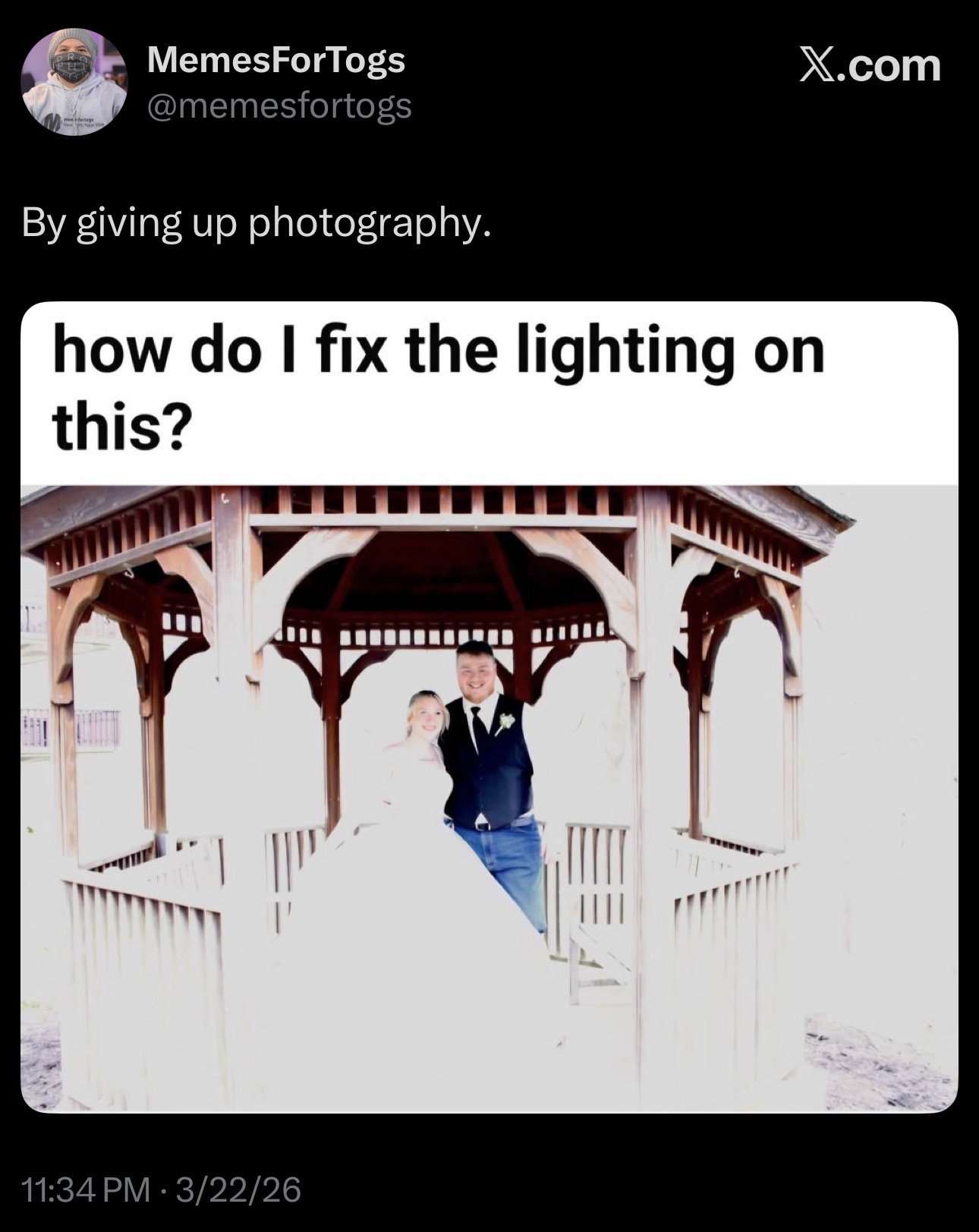 Area Photographers Weigh In On How To Fix Overexposed Wedding Photo; Community Reaches Consensus Immediately